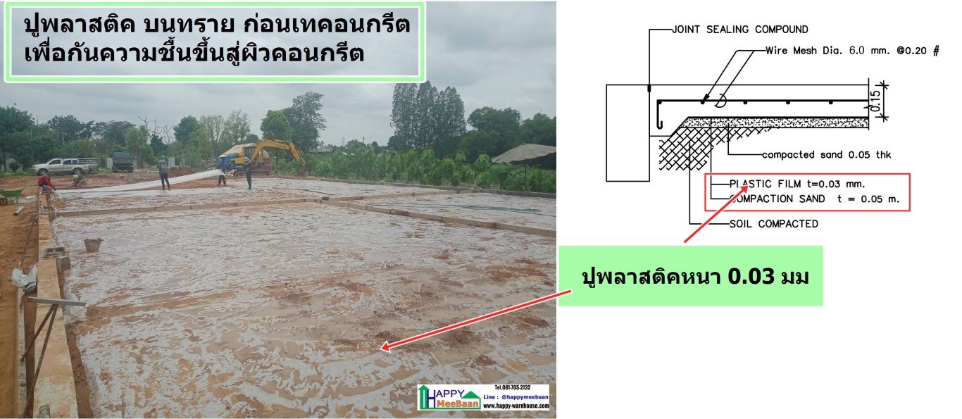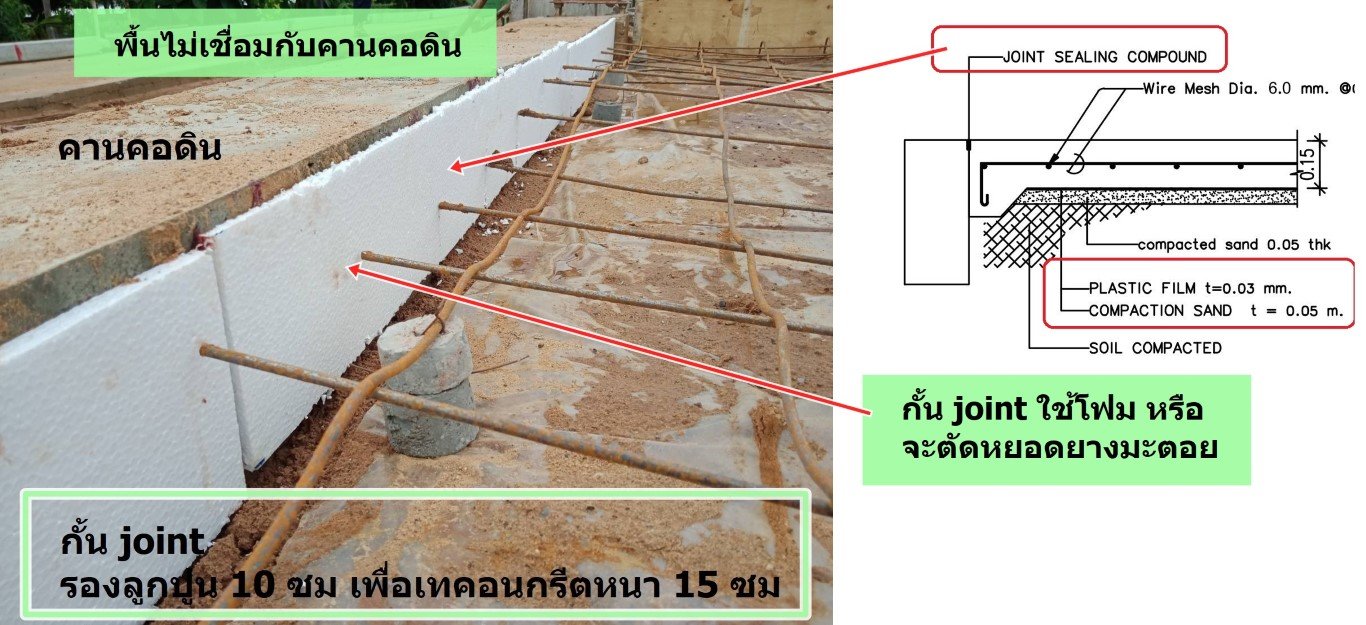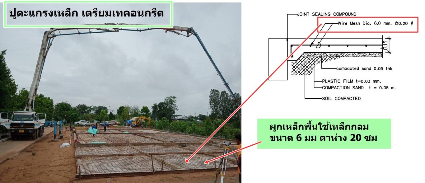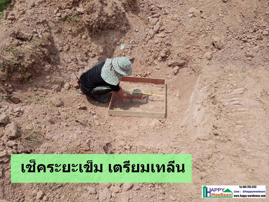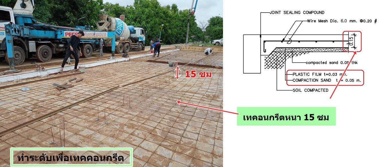 ดินเดิมถึง 20 ซม แต่เราจะเทคอนกรีต 15 ซม ดังนั้น ต้องมีการถมดินและทรายเพิ่มเติม 5 ซม