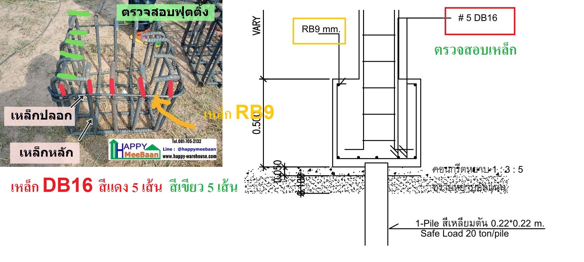 สิ่งสำคัญในการตรวจสอบขึ้นตอนนี้คือ จำนวนของเหล็กที่มาผูก ขนาดเหล็กผูกค้าน