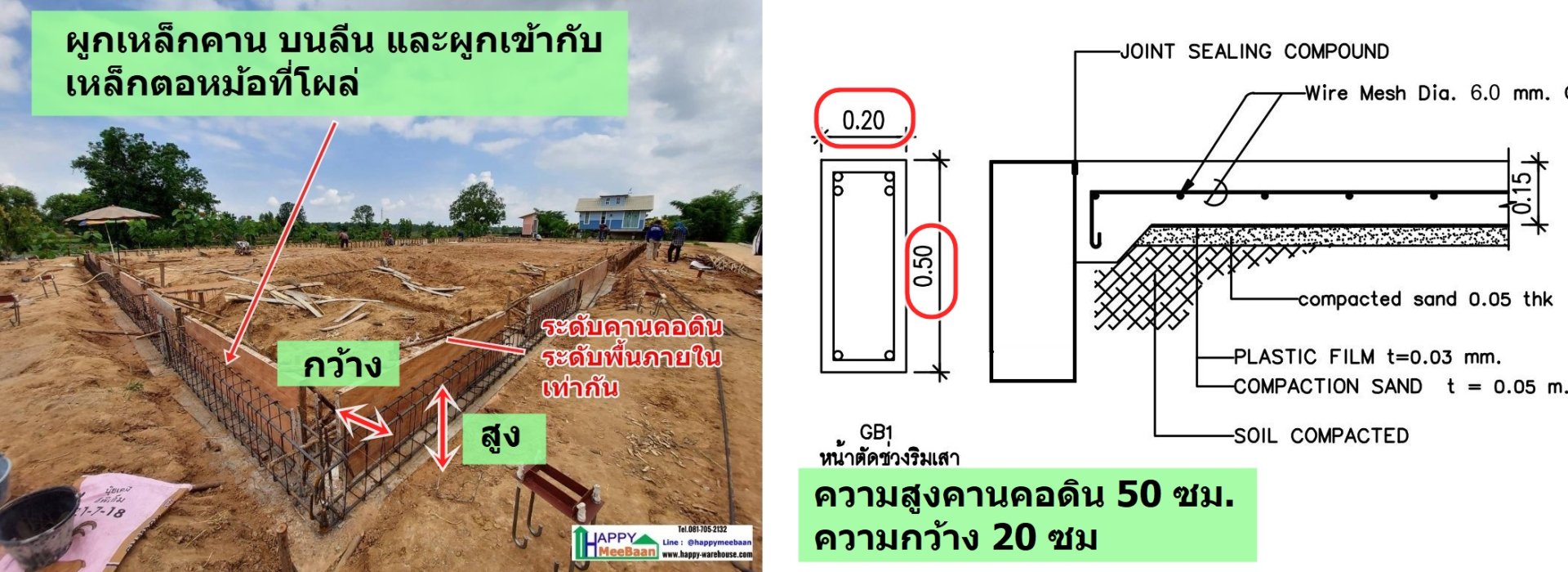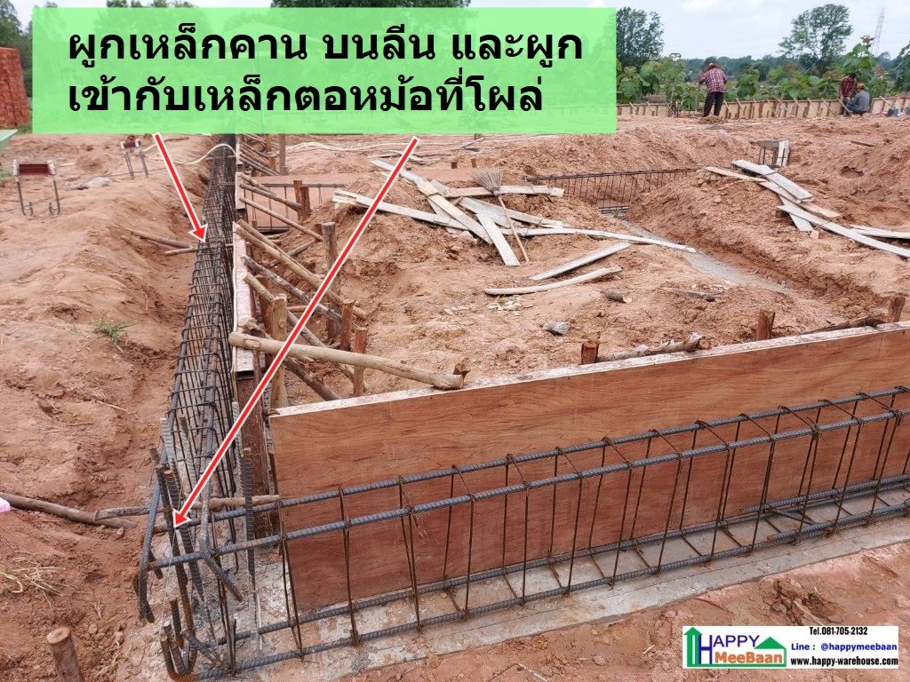 หลังจากทำฟุตติ้ง และโผล่ตอหม้อไว้เรียบร้อย ก็จะเริ่มดำเนินการผูกเหล็กคานคอดิน