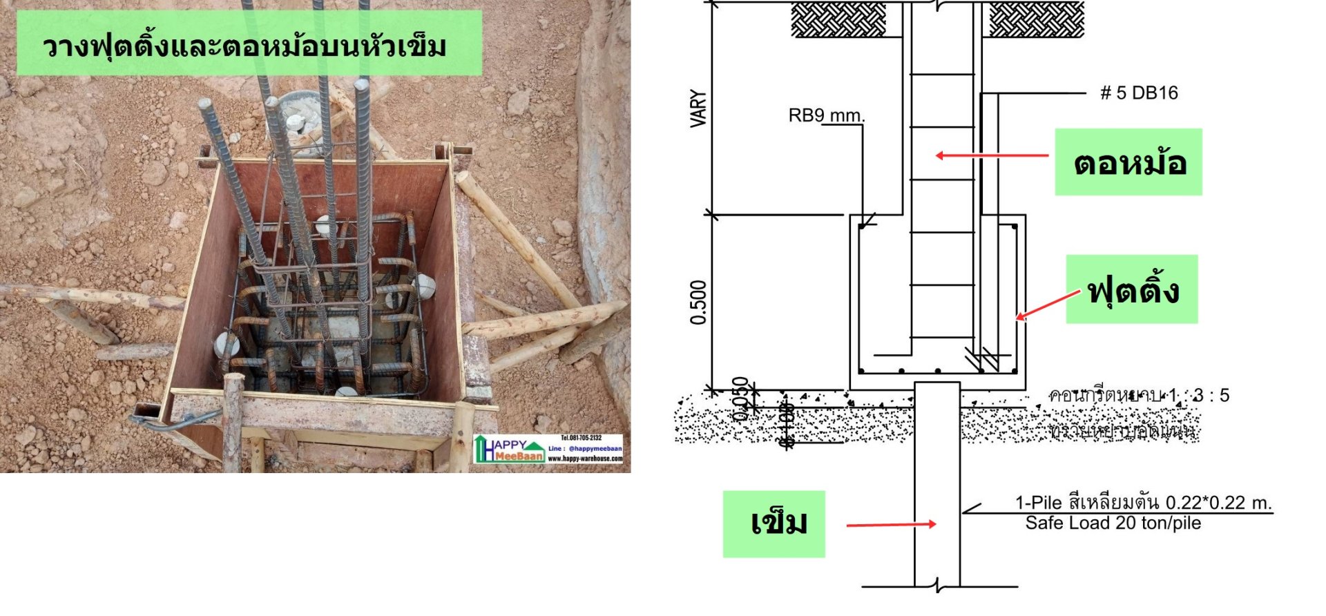 หลังที่กำลังแนะนำฐานรากนี้ จะเป็นฐานรากเข็มตอก มีฟุตติ้ง ตอหม้อ และ