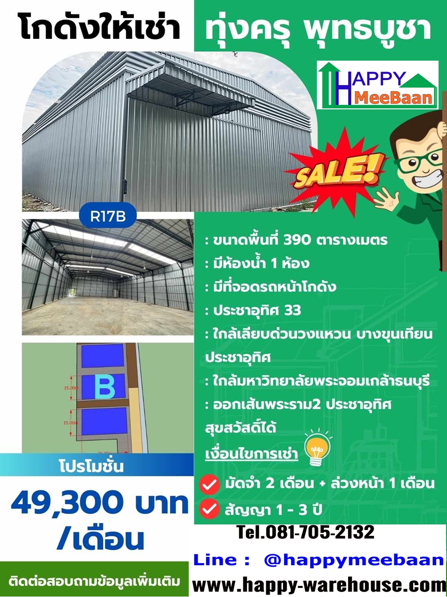 โกดังสำเร็จรูปให้เช่า ประชาอุทิศ 33 (HR17)