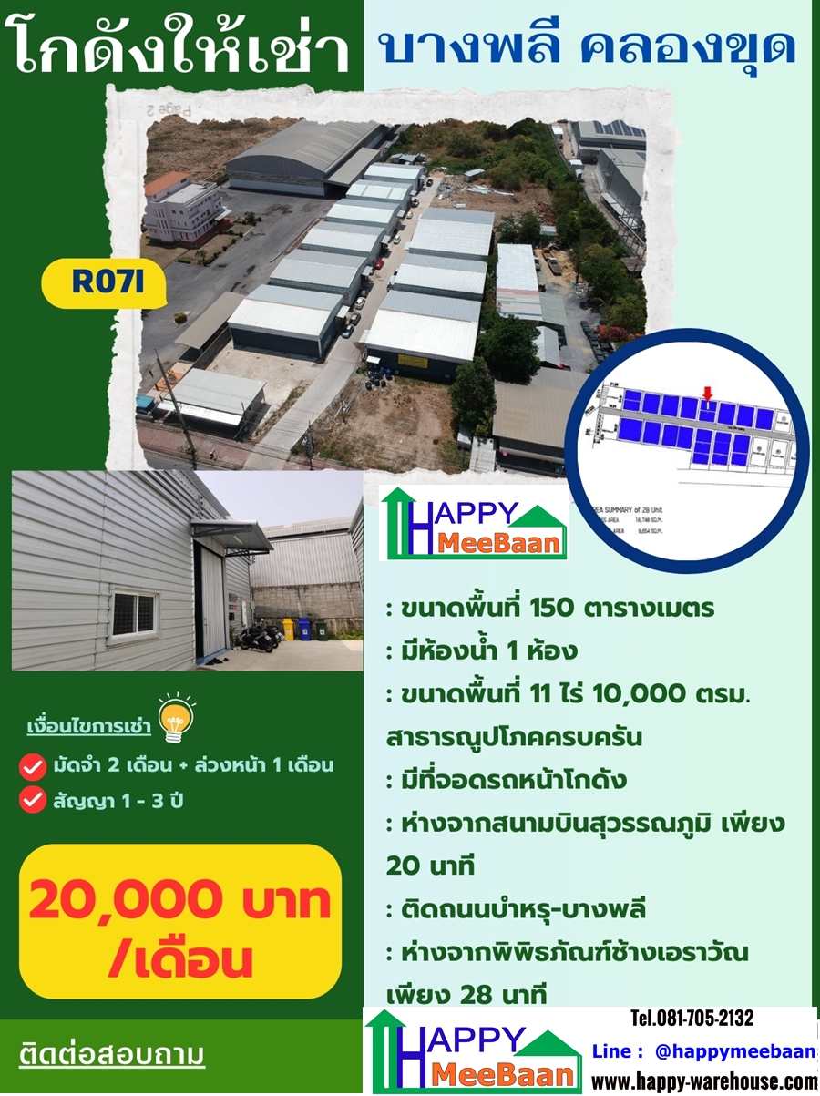โกดังสำเร็จรูปให้เช่า แพรกษา บางพลี คลองขุด (HR07)