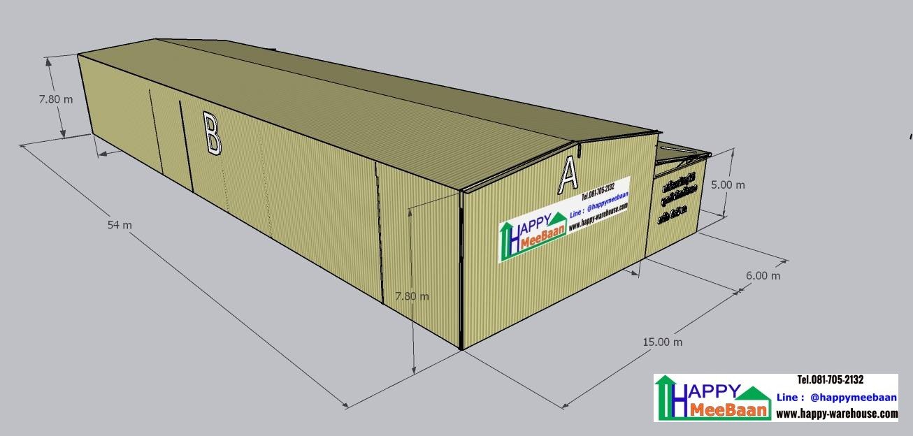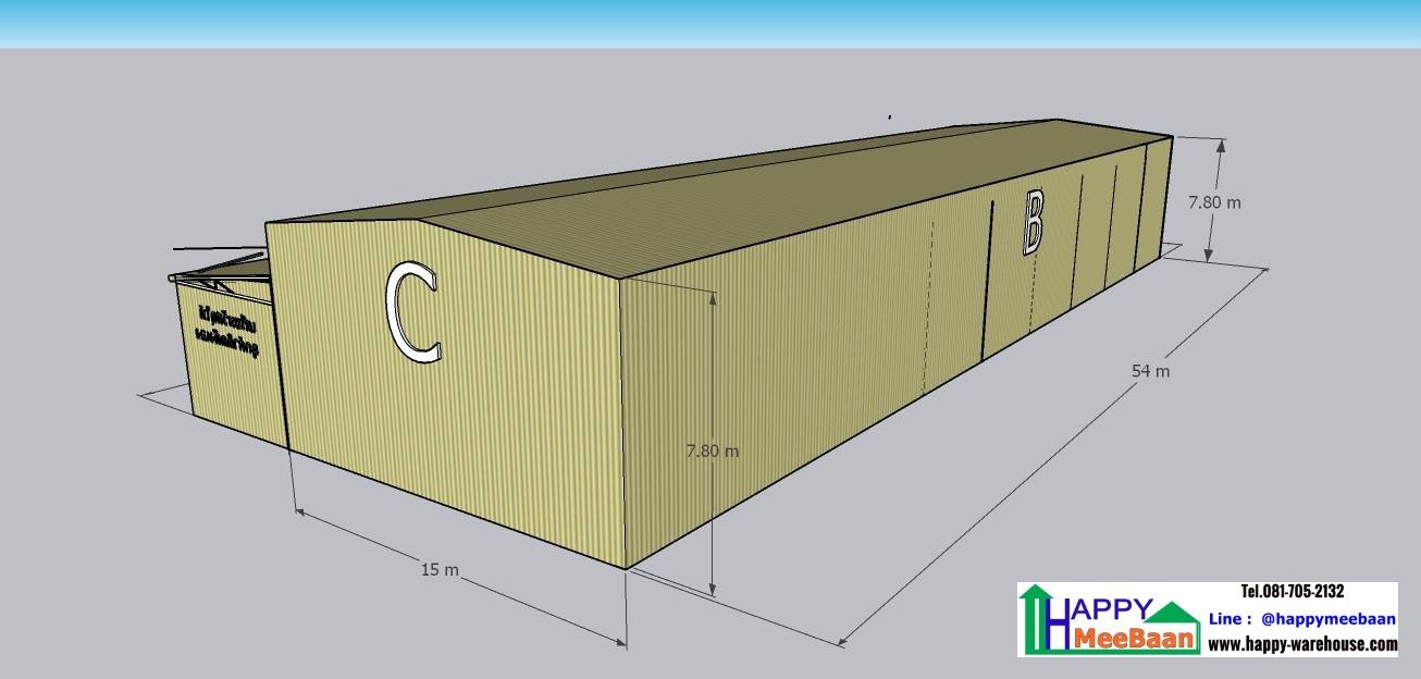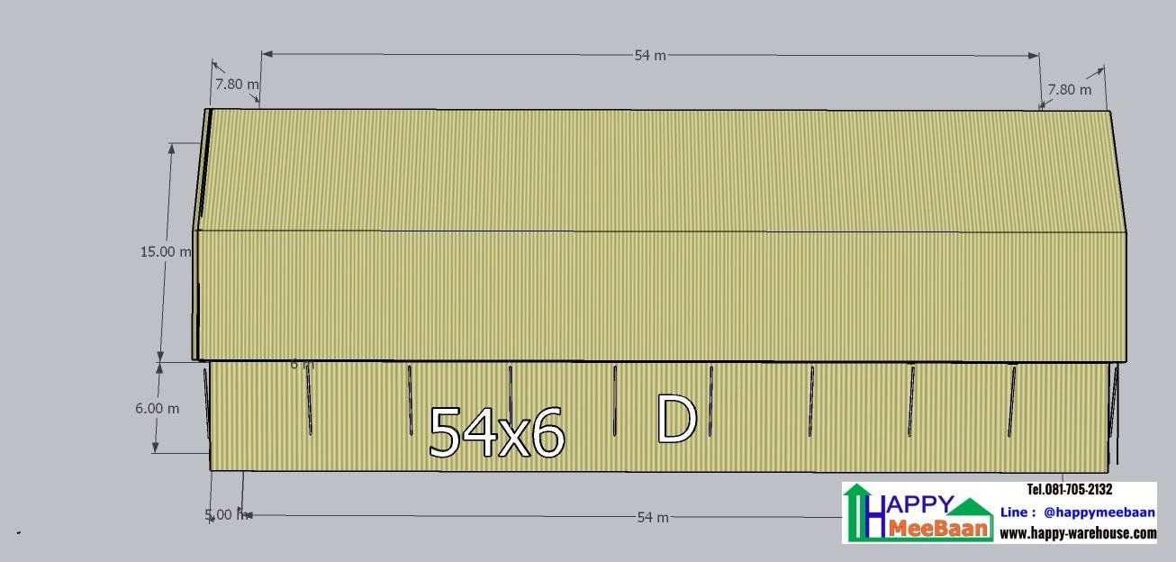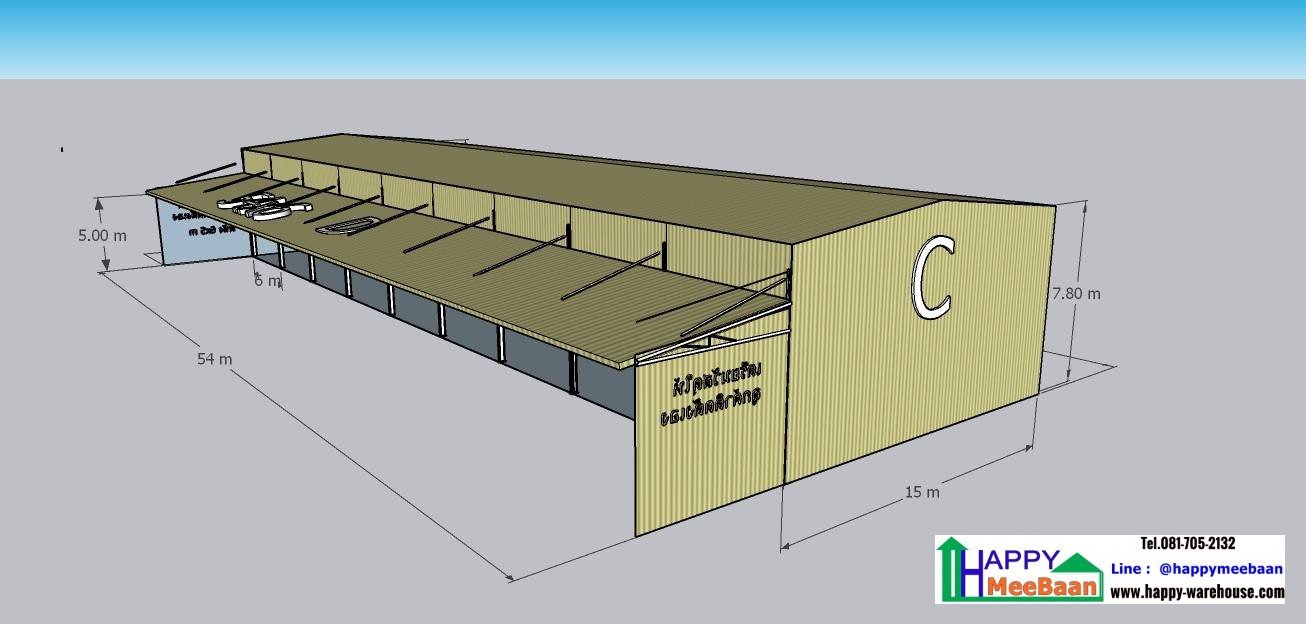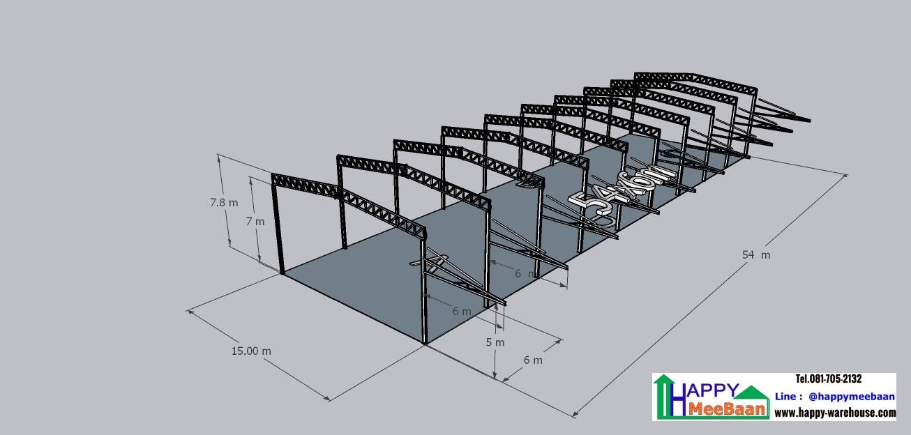 รายละเอียดโครงการโกดัง HWHC ขนาด 15x48 เมตร สูง 7.8 เมตร (หัวเสา 7 เมตร ทรัส 0.8 เมตร)