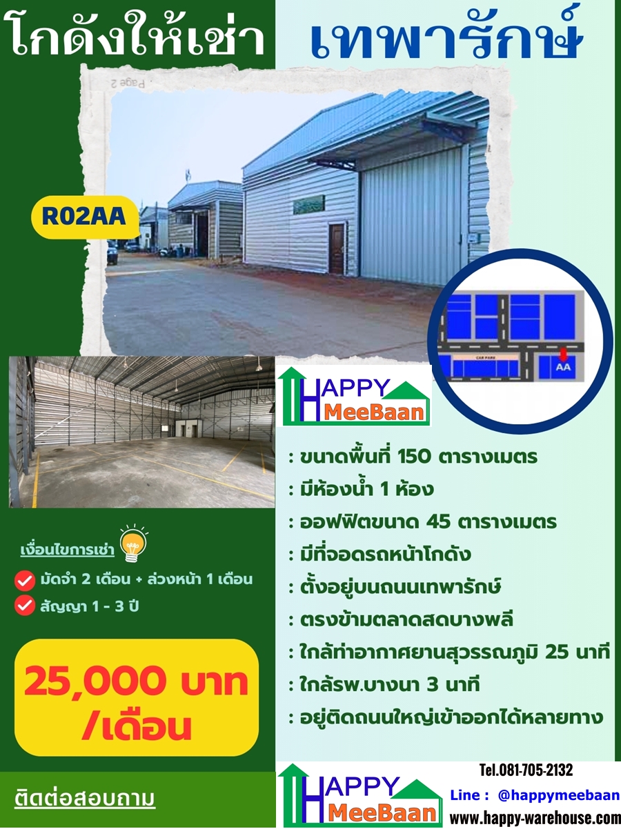 โกดังสำเร็จรูปให้เช่า เทพารักษ์ สมุทรปราการ (HR02)